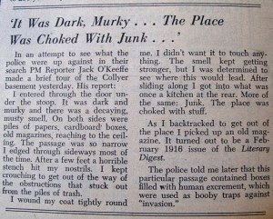 March 27, 2011Collyer Brothers Leave a comment "It Was Dark, Murky… The Place Was Choked With Junk…" PM Daily, March 26, 1943