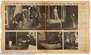 Weegee photo in upper right corner: “Here’s what the wind did to glamorous models in the window of Edith and Billie Bridal Salon, 271 Grand St.” Sept. 15, 1944