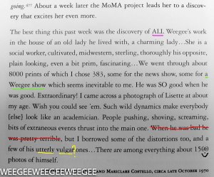 “The best thing this past week was the discovery of ALL Weegee’s work in the house of an old lady he lived with…
