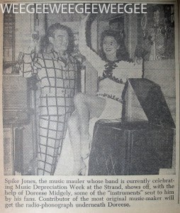December 14, 2011Uncategorized Leave a comment "Spike Jones, the music mauler…" (Not Weegee, but not bad…) PM Daily, Unidentified Photographer, July 1946??? Happy 100th Birthday Spike Jones…