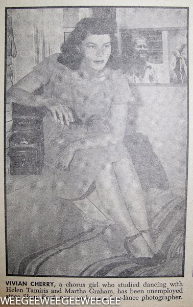 January 3, 2012Uncategorized Leave a comment "… now works as a free-lance photographer." PM Daily, ca. 1946 “Vivian Cherry, a chorus girl who studied dancing with Helen Tamiris and Martha Graham, has been unemployed since Show Boat, now works as a free-lance photographer.”