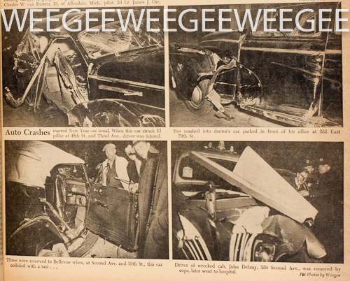 Weegee Daily… January 2, 1942… Auto Crashes Marred New Year – As Usual…