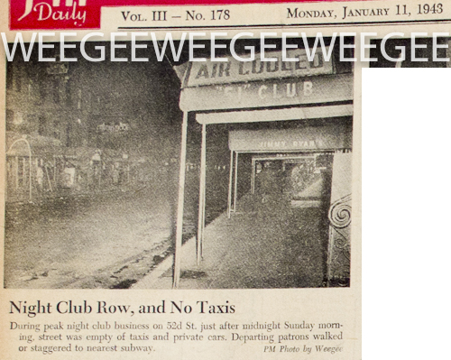 Weegee Daily… January 11, 1943… Night Club Row, and No Taxis…