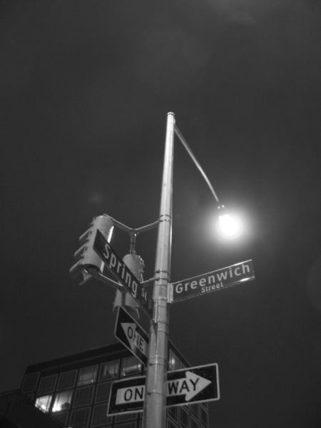Weegee Daily… January 17, 1941… A truck smashed a fire-alarm box on this pole at Spring and Greenwich Sts…