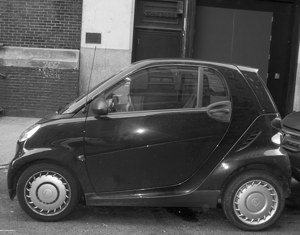 No Firemen for Midget Car: No fire, instead a very small automobile and at the end of the antenna, a plaque stating that Herman Melville lived behind the very small automobile (no white whale, no Moby Dick of a vehicle), where he wrote Billy Budd, (and a lot of poetry, where his son killed him self – shot himself in the head, I believe; where Herman commuted across town, to the Hudson River, to a boring job). In front of the back of the Armory (site of the (in)famous 1913 Armory show)… Ceegee, who took the picture, monomaniacally pursuing his own white whale of photography, didn’t suggest that the driver pull car to nearest modernist, post-cubist, circular circus staircase, and ride the El… And the Pequod?