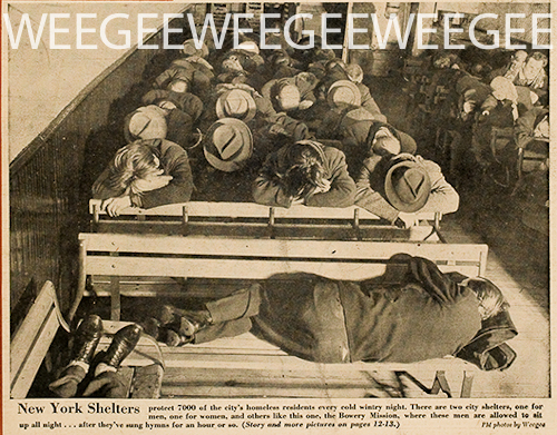 Weegee Daily… January 21, 1941… New York Shelters protect 7000 of the city’s homeless residents every cold wintry night. Original size at 500 × 391