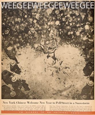 Weegee Daily… January 27, 1941… New York Chinese Welcome New Year to Pell Street in a Snowstorm…