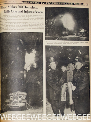 Weegee Daily… January 27, 1941… Blaze Makes 200 Homeless, Kills One and Injures Seven… Original size at 298 × 400