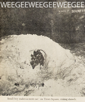 Weegee Daily… January 29, 1943… Oops-another pedestrian loses his footing in slippery drifts…