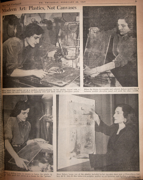 Zahara Schatz (wikipedia page here) working and at her one-person show at the Pinacotheca Gallery…