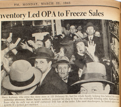 Weegee Daily… March 22, 1943… “Butter buyers suddenly jammed his shop…”