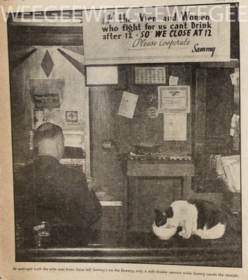 Weegee Daily… April 1, 1945… At midnight both the elite and bums have left Sammy’s on the Bowery…