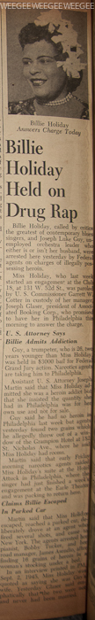 66 Years Ago Today… Billie Holiday Held on Drug Rap…