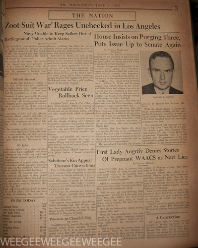 June 9, 20131943 70 Years Ago Today… Zoot Suit Riots… PM Daily, June 1943, pp. 3 and 12 More info and documents here… (to be continued…) 1943zoot suit riots