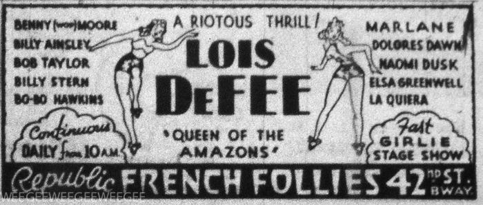 August 20, 20131941 “Continuous from 10 A.M… ‘Queen of the Amazons…” New York Daily News, August 1941 Lois DeFee Lois DeFee