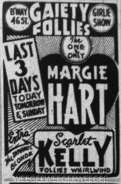 Ms. Britton said that in 1939, she was working at Minsky’s Gaiety, then a theater at 46th Street and Broadway, with Margie Hart, and Miss Hart was dating a detective who warned her when the censors were coming to give her time to slip on a G-string. When she started dating someone else, the warnings stopped and Miss Hart was arrested.