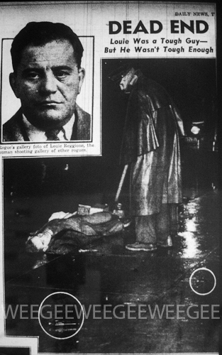 Weegee Daily… August 26, 1940… From Federal Penitentiary to This… The Guns, The Gunman, The Gutter… Original size at 313 × 500