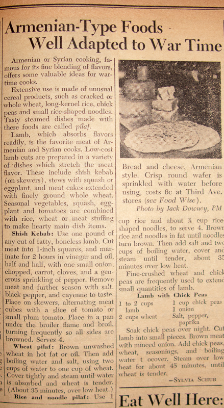 70 Years Ago Today… “Armenian-Type Foods Well Adapted to War Time…”