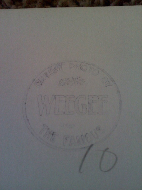 “Weegee Stamped Photo” or, “We are against fraud and deceit…”