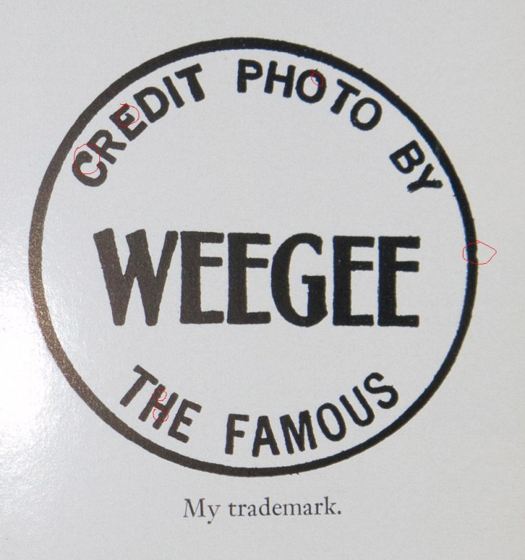 “Weegee Stamped Photo” or, “We are against fraud and deceit…”