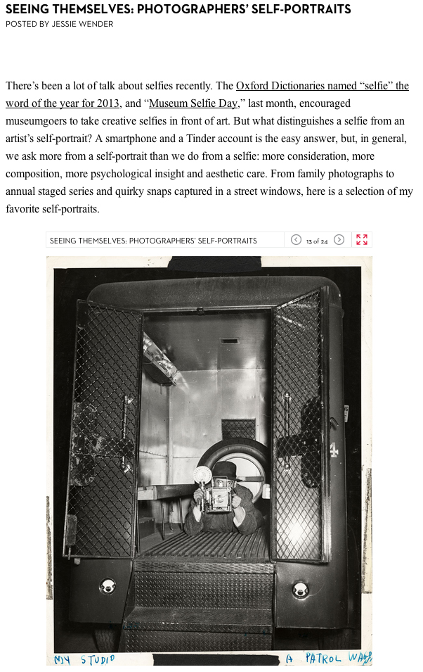 February 20, 20141940 “PHOTOGRAPHERS’ SELF-PORTRAITS” Screen shot of New Yorker – Photo Booth, 02/20/2014 We prefer Weegee the wag… PM, July, 28, 1940
