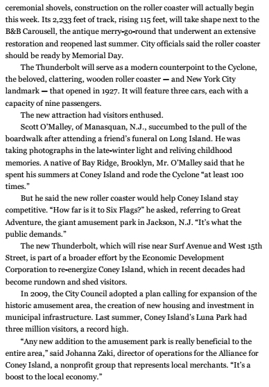 March 10, 20141941 Coney Island Improvements Return… New York Times, January 17, 1941 Coincidentally, in today’s New York Times: “New Roller Coaster Promises Coney Island a Return of Thrills” 1941Coney Island