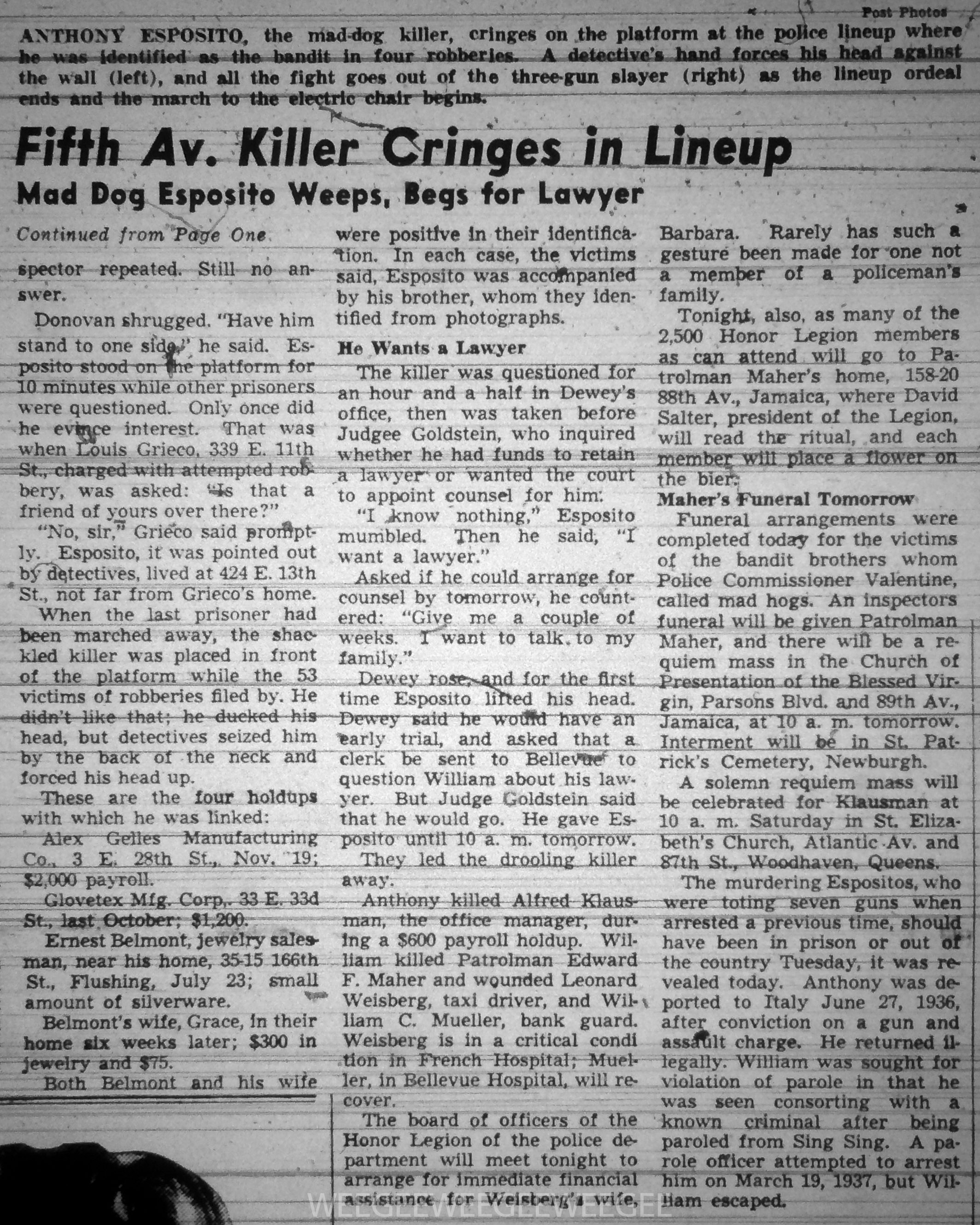 “Mad Dog Killer Cringes…” – Mad Dogs in the New York Post…
