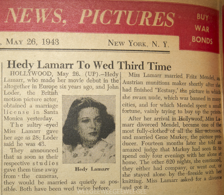May 26, 20141943 71 Years Ago Today… “Hedy Lamarr To Wed Third Time” PM, May 26, 1943 1943Hedy LamarrPM
