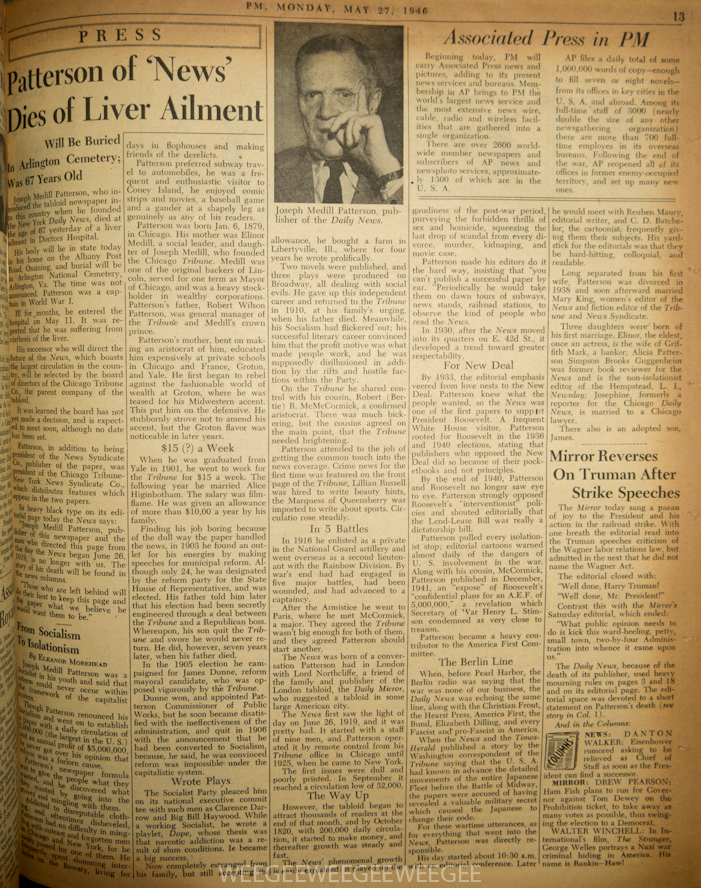 “Patterson of ‘News’ Dies of Liver Ailment”