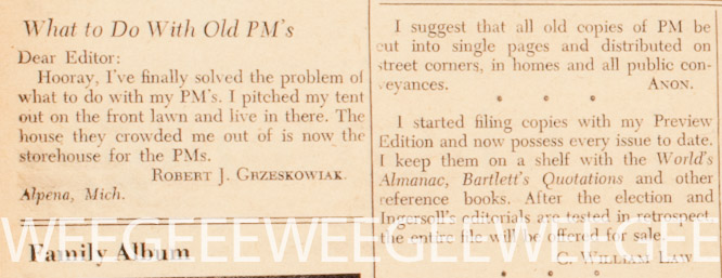 76 Years Ago Today: “What to do with old PM’s” and “N.Y. Now Has 8668 Horses…” Original size at 666 × 257