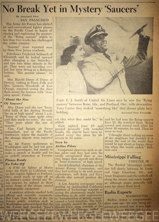 Flying saucers seen in New Jersey… July, 1947