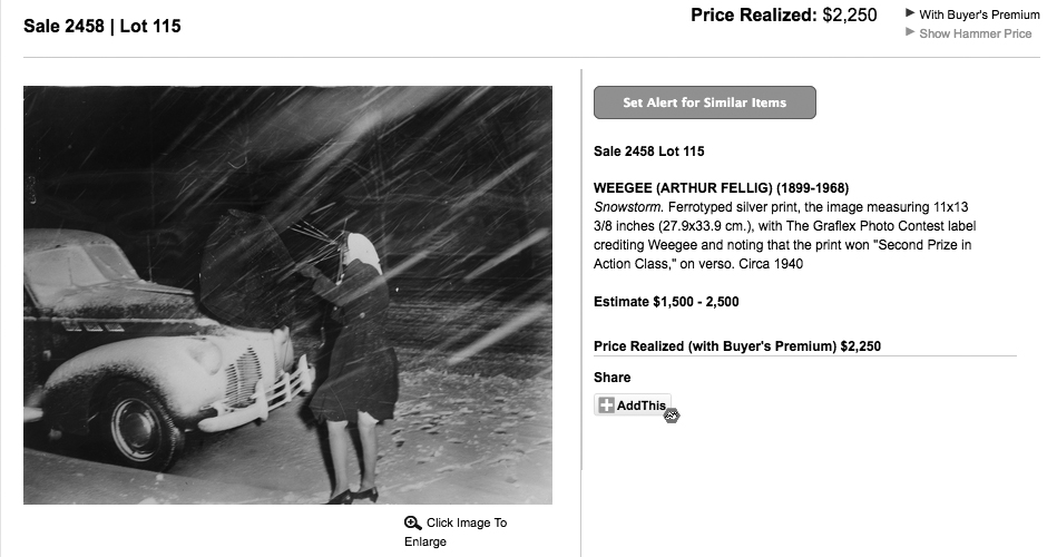 Three Weegee Photos: Recent Auction, October 2017