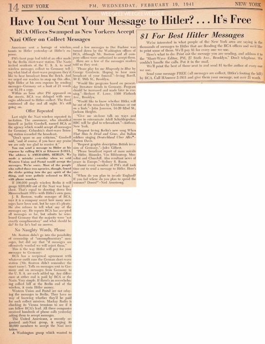 PM, February 19, 1941, pp. 14 and 18 (photos by M. Engel)