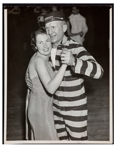 Weegee, Burglar’s Ball. Dr. Hannibal Hamlin and Edna Cobb dancing at Webster Hall, 10″ x 7 5/8″, ca. 1937 (screenshots from auction house website). Sold for $1,250.00.