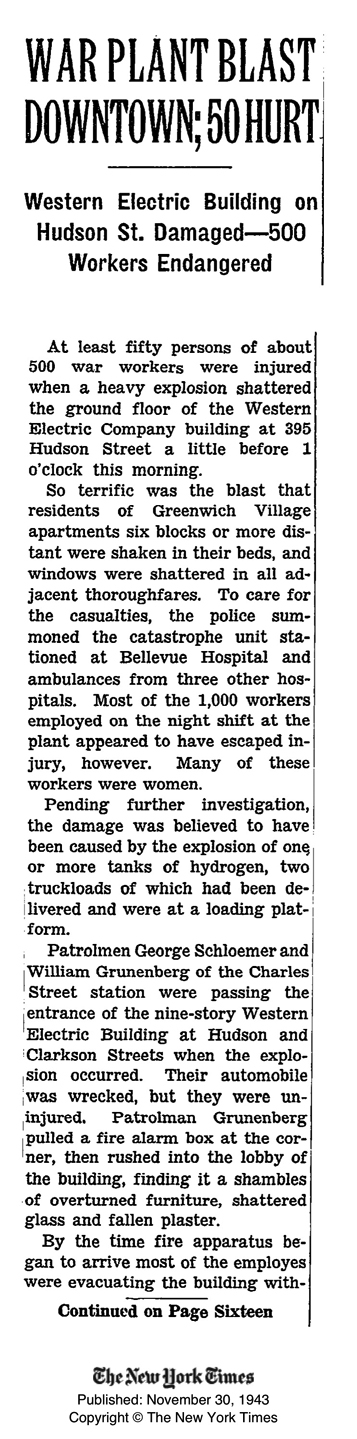 About 8 Weegee photos of the Western Electric blast can be found in the extraordinary “Extra! Weegee” book…
