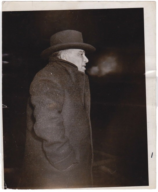 Photo is in the extraordinary Extra! Weegee, with the caption: “Mayor Nipped By Jack Frost.” “…5-alarm fire at the municipally owned pier 83 on the Hudson River… his right cheek was frost bitten…”