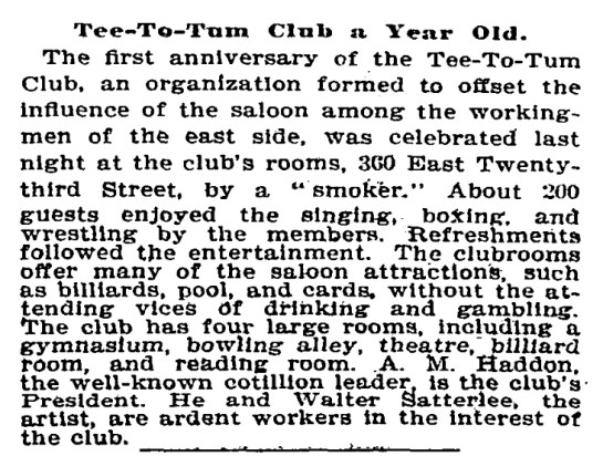 “12:15 – Tee-To-Tum Club, 346 East Twenty-third Street…”