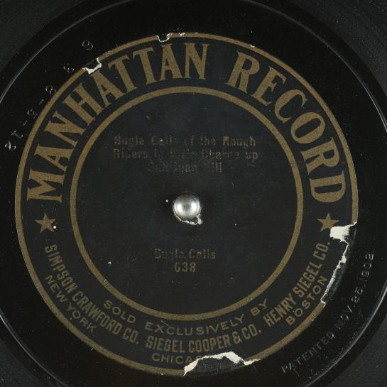 Bugle Calls, by Chief Trumpeter Cassi of Theodore Roosevelt’s Rough Riders. One side, 7-inch, 1898.