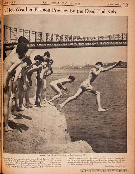 “The hot weather last night took Weegee, the photographer, to the Lower East Side…”