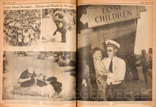 Waiting three hours to get a picture of the official first lost child of the season when a man came over to the Park Department attendant with this and and, “Lost child.” Pretty soon his wild-eyed mother came up and took him away. The child was making such a rumpus, and the mother seemed so excited about it all, that I didn’t want to bother them to ask their names and address. PM Photos by Weegee