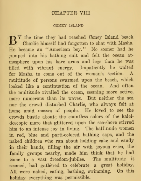 Most of the people arrived with bathing suits under their street clothes and undressed on the beach. A lot brought their lunches, too, and spread newspapers on sand to eat. It was 87 degrees when I took this picture.