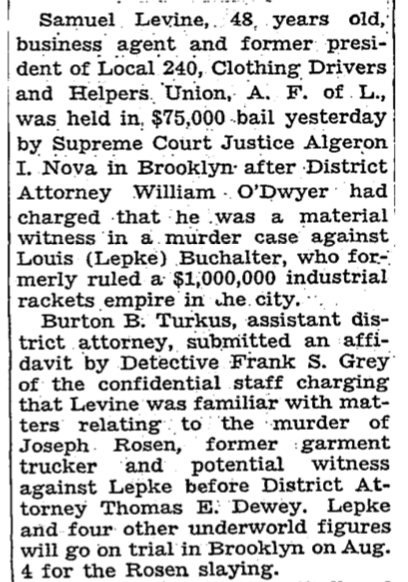 In today’s Lepke (and/or Murder Inc. and/or “underworld”) news… the significant murder trial of “garment trucker” Joseph Rosen rolls on…