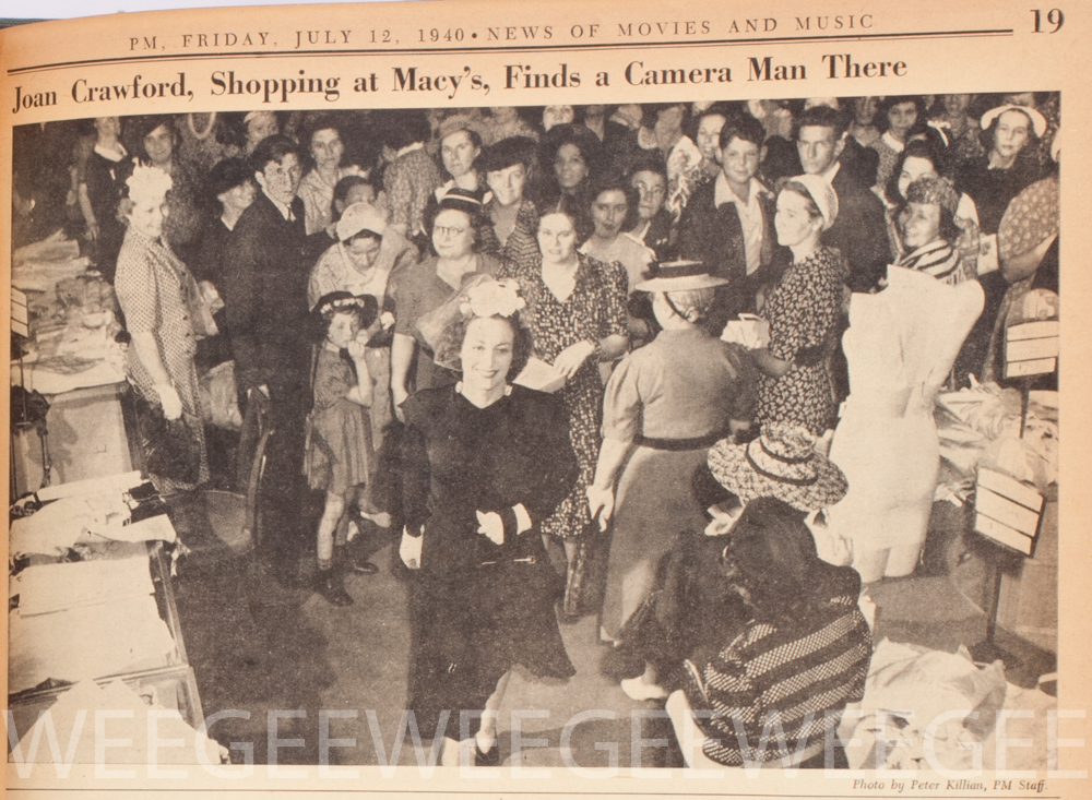 Joan Crawford, Shopping at Macy’s Finds a Camera Man There