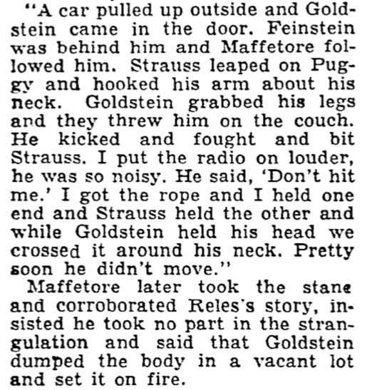 Irving (“Puggy”) Feinstein is the charred corpse under the carpet in the picture above…