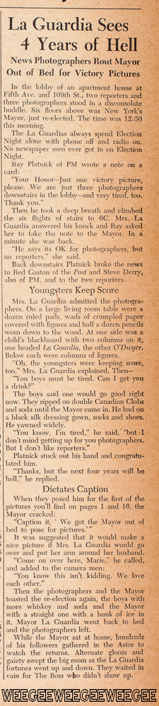 We took this picture at 1 a.m. La Guardia said to caption it: “We got the Mayor out of bed to pose for pictures.”