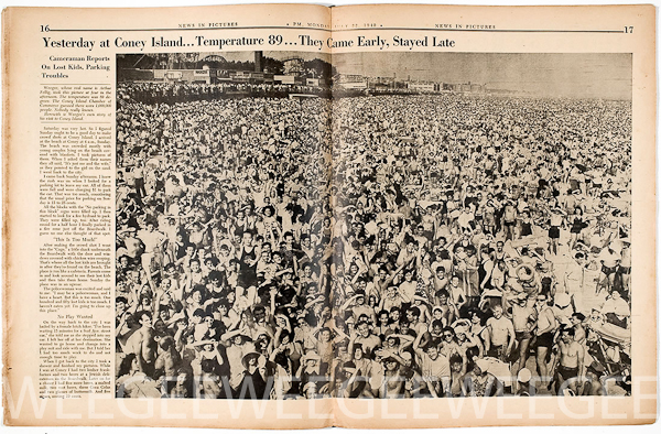 Herewith is Weegee’s own story of his visit to Coney Island.