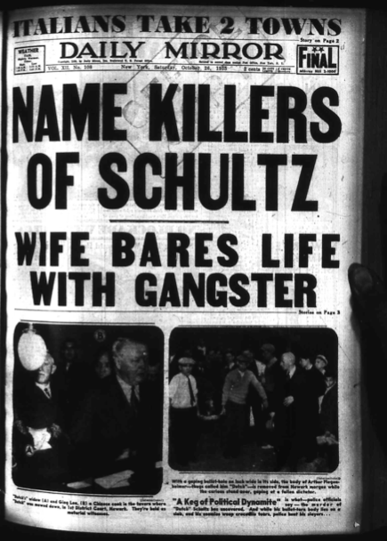 October 26, 20241935 “Name Killers of Schultz” Daily Mirror, October 26, 1935, p. 1 Daily Mirror, October 26, 1935, pp.14-15 Dutch Schultz