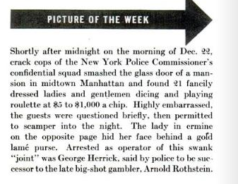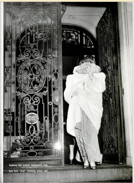 Gambling lady scuttles anonymously from New York “joint” following police raid.