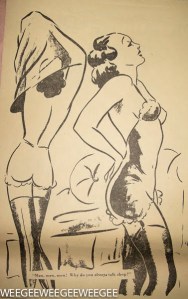 Thus, when exotic Sherry Britton chants a slightly naughty ditty, and drops with thorough finesse and little difficulty the bright scarlet satin gown and the interesting undergarments which lie beneath it, we are inclined to regard Miss Britton as a daring performer.