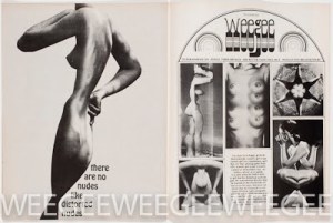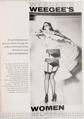 For most of us happy-go-lucky heterosexuals, a pretty girl is just a pretty girl (no complainers, we!) But, for that, photographer WEEGEE, a pretty girl is just a starter, a piece of unmolded clay, an empty canvas, so to speak. It is only when he finds a pretty girl that his diabolical work begins. By a mysterious process that he learned in the mysterious orient (or so he says, because we think he listened to too many Shadow radio programs when he was a child) he places a trance on the pretty girl and after the inevitable transmutation, he slyly sets up his camera and ho, ho, ho, away he goes.